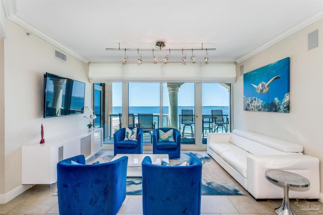Located in one of Pensacola Beach's most sought after and elite condominiums, Portofino Island Resort and Spa, this sky home is impeccably designed, move-in ready, turn key, with all custom furnishings to convey. Comfort and elegance await you in your 2 bedroom, 2.5 bath sky home with exquisite designs, high-end finishes with modern updated appliances. Recently remodeled with distinctive lighting, custom display floating shelves in the dining room, custom painted half bath, and completed with new LVP flooring in both bedrooms. The improved gourmet kitchen features upscale, granite countertops, and all new 2022 stainless steel appliances....read more